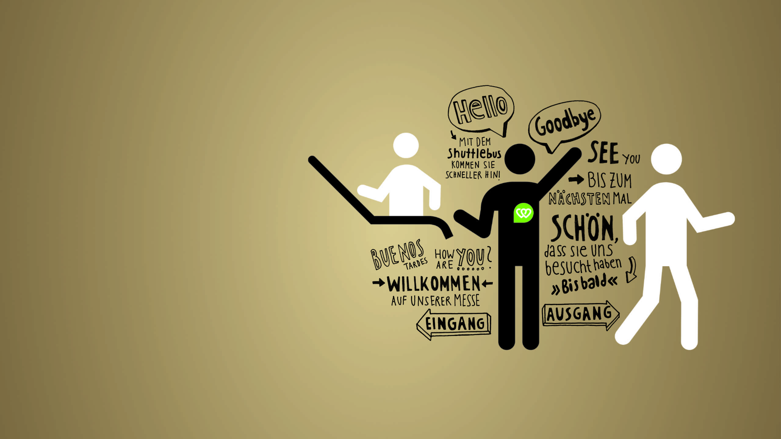 Denn Du bist gemeinsam mit uns das Gesicht der Messe Frankfurt. Wir alle betreuen Kunden an vielen verschiedenen Punkten auf dem Messegelände, aber eins ist immer gleich: Wir begegnen unseren Gästen immer freundlich und mit einem Lächeln!